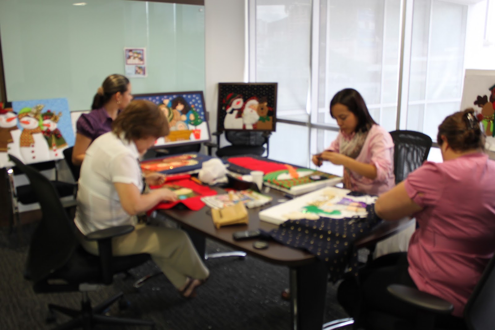 Con mis compañeras realizando los cuadros de patchwork sin aguja, aprovechamos al máximo nuestra hora de descanso al medio día, nos divertimos mucho